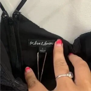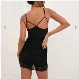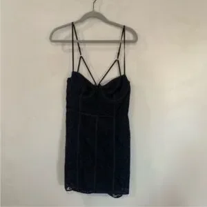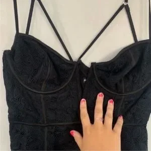 For Love & Lemons Julia Black Mini Dress. Blossom lace bodycon dress with underwire cups, V wire, corset detailing on bodice and adjustable shoulder straps.