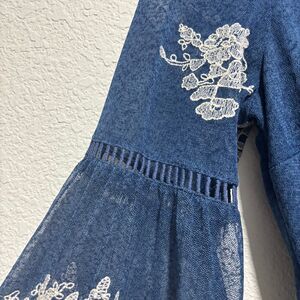 John Mark Fleur In Bloom Blouse Top Small Blue White Embroidery Bell Sleeve