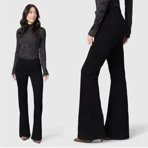 Excellent used condition! Black flare leg denim jeans. High-rise with five functional pockets and button zip closure. A great trendy every day.