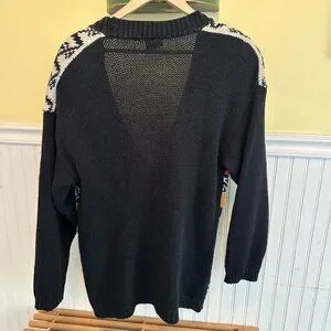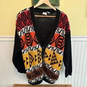 Canteen M Vintage Oversized Cardigan Sweater Geometric Pattern Black/Yellow