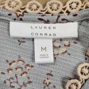 The LC Lauren Conrad Floral Lace Trimmed Sleeveless Tank Top in light blue, size medium, is a stylish and versatile addition to any woman's wardrobe. Perfect for warmer weather or layering for with a sweater.