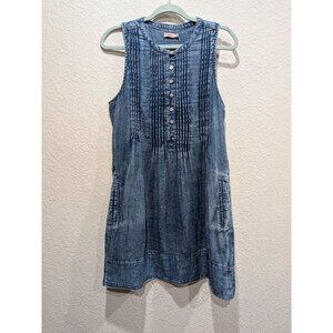 Faherty Womens Isha Chambray Cotton Tank Dress Size Small Pintuck Relaxed Fit
