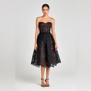 NADINE MERABI Olivia Black Strapless Lace Dress