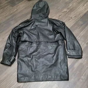 Stay stylish and warm with this sleek black leather hooded jacket. Perfect for any occasion, this jacket combines comfort with a modern look.