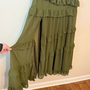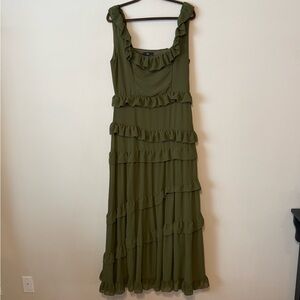 Lulus Olive Green Ruffled Tiered Compelling Romantic Maxi Dress Size XL
