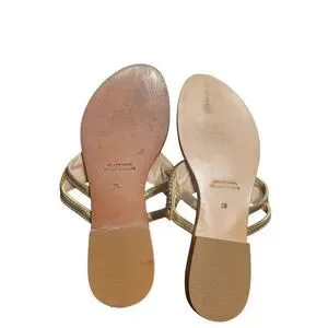 Asapatilha Sandals Women's 6 Tan Leather Beaded Rhinestone Flat Resort Boho