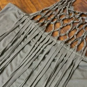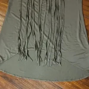 Stylish olive green halter top with fringe detailing. Perfect for a casual day out or a night on the town.