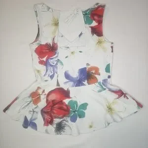 Anthropologie Flynn Peplum Tank White Floral Sz S EUC 16" PTP Retired