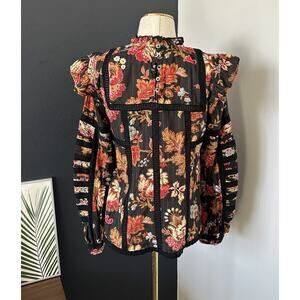 SEA New York Floral Pascale Blouse Top Long Sleeve Mock Neck Ruffle