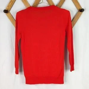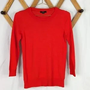 J. Crew Red Merino Wool 3/4 Sleeve Crew Neck Sweater Size XS