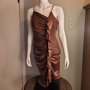 Y2K Deadstock I:NA Bronze Metallic Ruched Bodycon Dress Indie Sleaze Glam Sexy