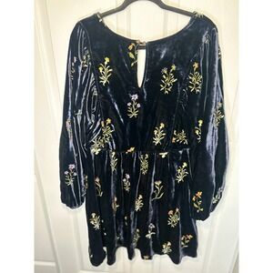 Anthropologie Embroidered Shimmer Velvet Floral Mini Dress Navy Blue XL