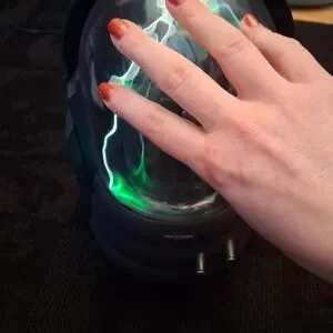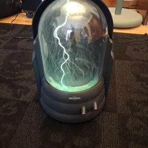 Futuristic black plasma ball lamp. Perfect for adding a unique touch to any room. The "White Lighting " plug in electric light. Effects change by touch and sound. Took out of box once but otherwise brand new. Works great!