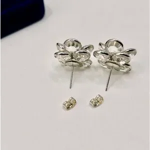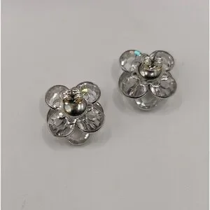 Vintage Crystal Flower Petal Glass Earrings Post Back Silver