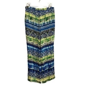 CHAUS Women's Palazzo Pants Blue Multi Pockets Wide Leg Elastic Waist Medium