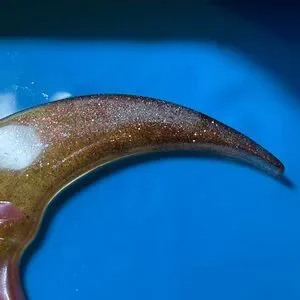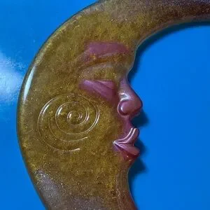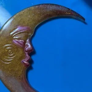 Elegant crescent moon wall decor in gold and red. Perfect for adding a celestial touch to any room. Made with resin .