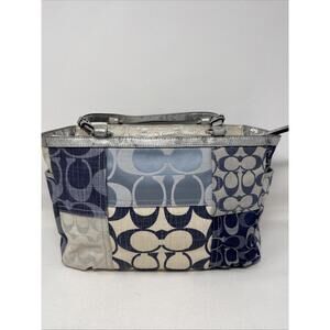 Coach Denim Patchwork Signature Tote Book Bag + Charm Vintage Y2K