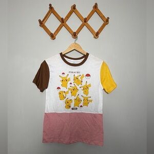 * Pikachu graphic, multicolor, color block, short sleeve, pullover, lightweight