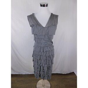 Bailey 44 Dress Womens Small Gray Sleeveless V-Neck Tiered Ruffle Sheath Party