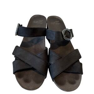 Dansko Susie Milled Black Nubuck Leather Slide Wedge Sandals Size 40 EU S1