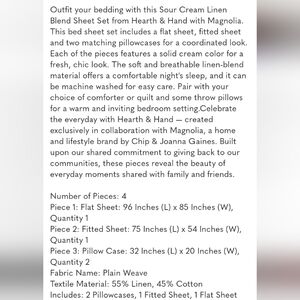 Hearth & Hand Sour Cream Linen Cotton Blend Sheet Set FULL SIZE