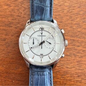 Vincero Chrono Mens Watch White Blue Stopwatch Leather