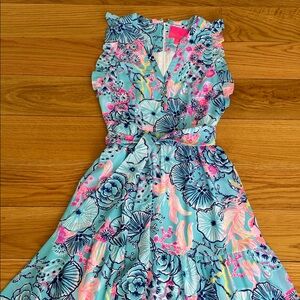 Lilly Pulitzer Floral Dress in Blue and Pink, 0