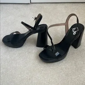 NWOT Mix No. 6 sexy, and gorgeous platform, chunky heeled sandals. 4 1/2 inch super chunky heel with 1 inch platform in the front of sandal. Love them and bought them in nude and silver also but unfortunately, they are made for younger and prettier feet than mine. Will be listing the others soon. Never worn. Sorry, no box.