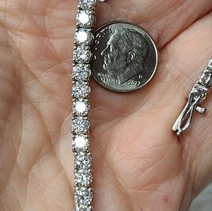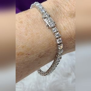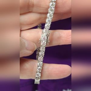 Image an almost 11 carat flawless diamond tennis bracelet....now imagine the cost! These gorgeous gemstones will test positive on a diamond tester, remain gorgeous forever and sparkle better than diamonds for a mere tiny fraction......Only you and your jeweler will know it's not diamonds!