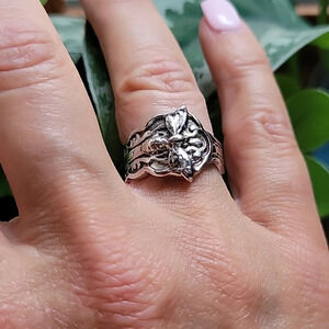 With a vintage finish; retro spoon ring style.
