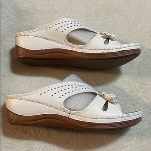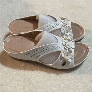 Step into style with these elegant white floral sandals. Perfect for any occasion, these shoes offer both comfort and sophistication.