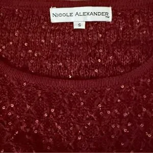 This elegant burgundy sweater features a stylish crew neck and shimmering sequins. New, never have worn