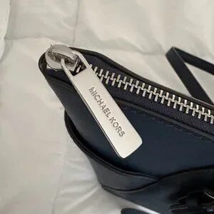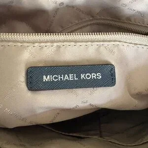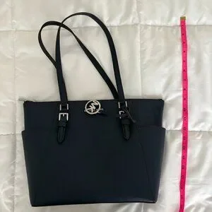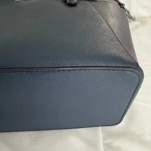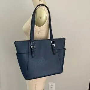 Michael Kors Charlotte Medium Tote Navy Saffiano Leather Top Zipper