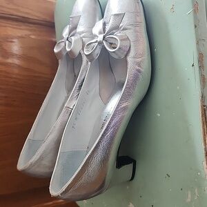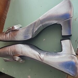 Vintage B. Forman Co. Metallic Silver Women's Pumps with Bow Detail Size 7.5