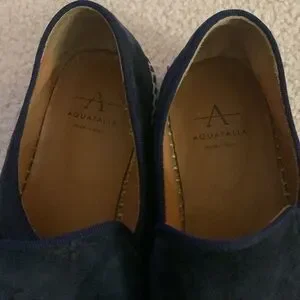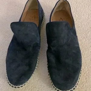 Elegant navy blue suede loafers. Comfortable and stylish design. Perfect for casual wear.
