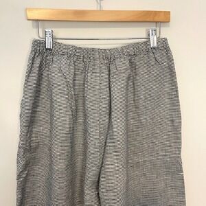 FLAX Linen Wide Leg Pants Womens Medium Black White Striped Coastal Lagenlook