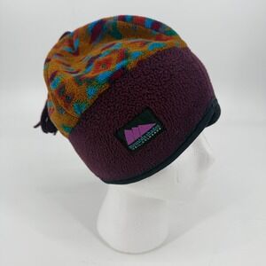 Vintage 90's Mountain Shades Vail Colorado Fleece Beanie Geometric Ski Hat