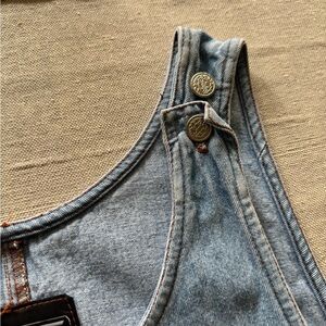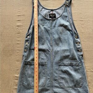 Stylish denim dress featuring side buttons and front pockets. Perfect for casual wear - in excellent condition.