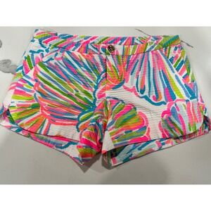 Keywords: Lilly Pulitzer, shorts, women's shorts, shell print, seersucker, colorful, summer, vacation, beach, casual, preppy, designer, printed shorts, bright, coastal