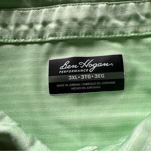 This Ben Hogan Golf Shirt for Men in size 3XL is a perfect addition to your wardrobe. The shirt comes in a mint green color and is made of a blended fabric of polyester and spandex. It features a collared neckline with a spread collar style and short sleeves with button closure.