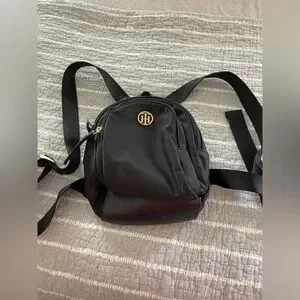 Tommy Hilfiger Mini Backpack Purse Gold Logo Black Adjustable Strap Pockets