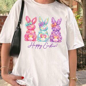 Brushstroke Bunny Shirt, Easter Party Cute Bunny Coquette Bow Tee