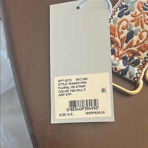 Cross body Stylish strap with beautiful detailed embroidery. Features gold clasps. Tags - never used.