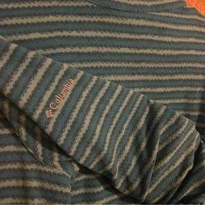 Large Columbia Fleece in great condition. A perfect layering piece for fall and winter. 3 different colors of blue. Measurements in pictures.