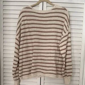 Blu Pepper 100% Cotton Cream and Brown Striped Sweater