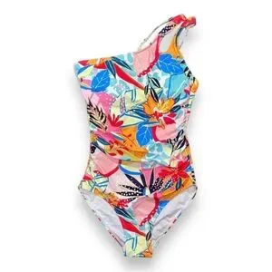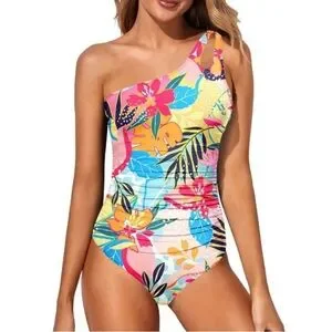 Holipick NWT Full Coverage One Shoulder One Piece Floral Swimsuit Colorful Small