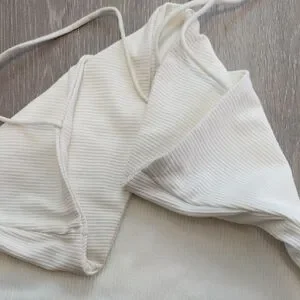Chic white camisole with spaghetti straps. Ideal for layering or wearing alone. Soft and comfortable fabric. Straps have a slight grey stain of sort. Barely noticed but wanted buyer to be aware. Medium or US size 6