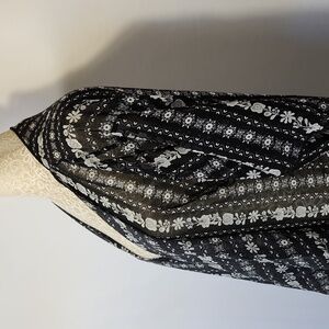 LulaRoe Women's Black White Chiffon Floral Print Waterfall Open Front Kimono S