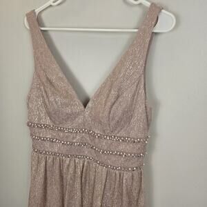City Triangles Metallic ALine Gown with Beaded Waist Bands Blush PROM WEDDING 13