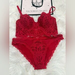 Victoria’s Secret dream angels lace corset bra/ cheekini panty set